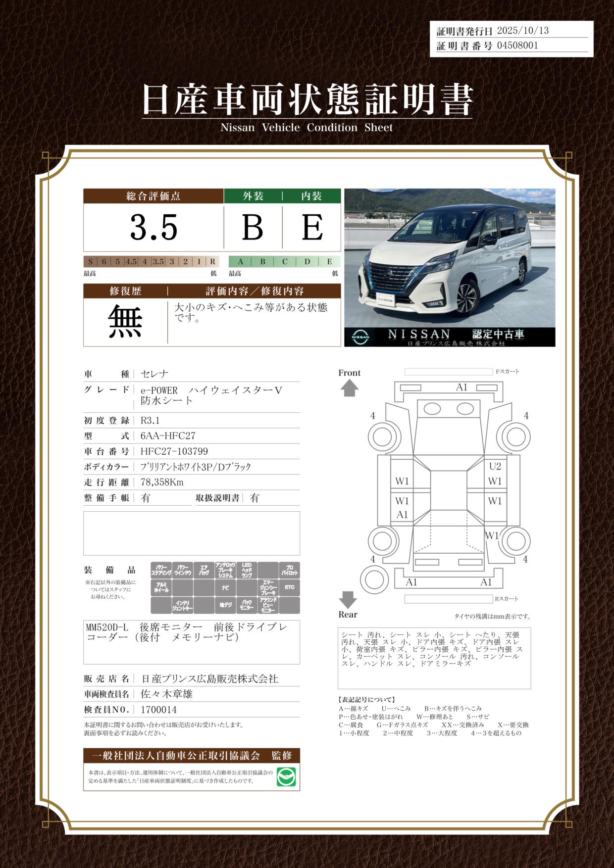 セレナ 1200cc 1.2 e-POWER ハイウェイスター V 防水シート 純正メモリーナビ フルセグTV