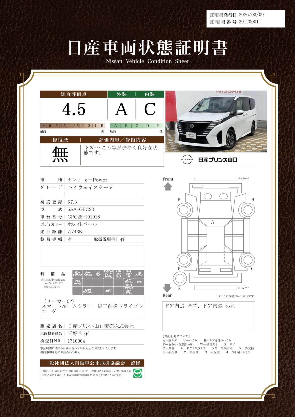「車両状態証明書」は、査定協会監修のプロの検査員が公正かつ確かな基準で検査した”安心の証”です。