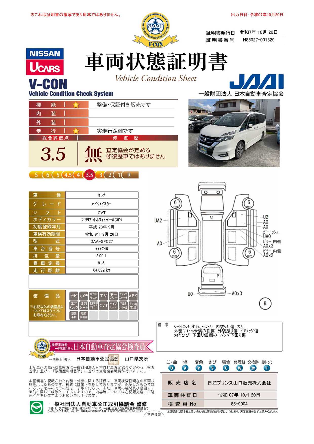 現状括弧書き内の年月まで車検有効期限が残っていますが、ご成約時に新しく車検を取り直します。なお取り直しの費用は車両価格に含まれています。