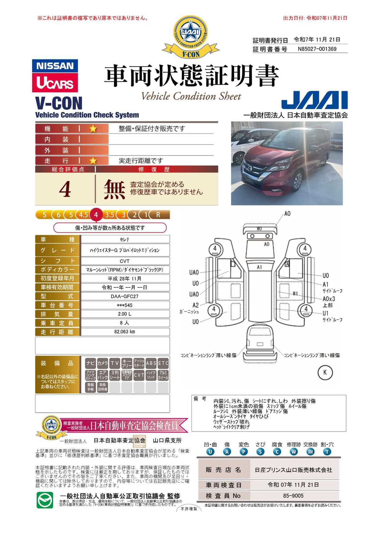 H28年式のセレナが入庫しました。運転支援システム『プロパイロット』搭載!乗る人みんなが快適に過ごせる人気のミニバンです♪