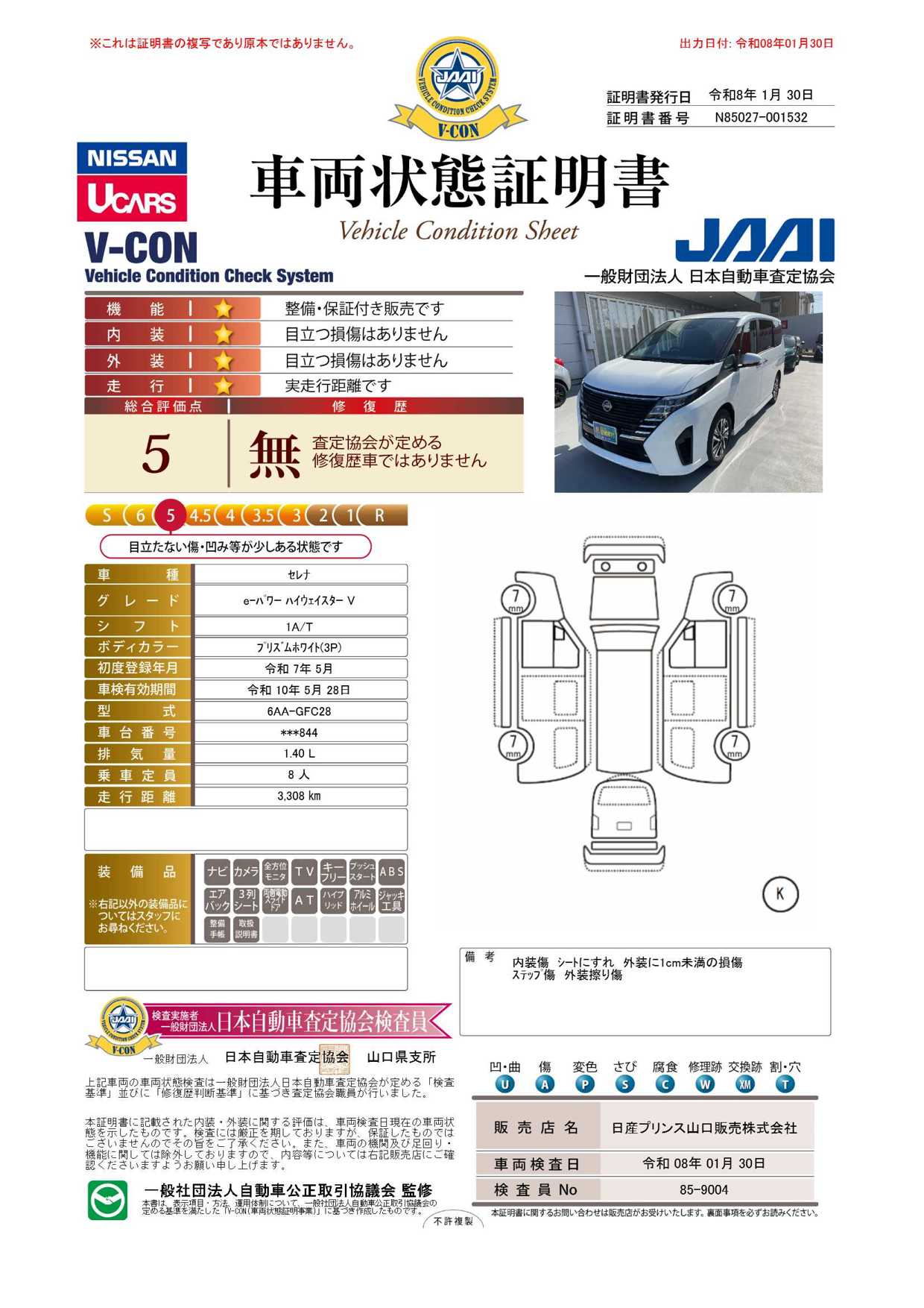 「車両状態証明書」は、査定協会監修のプロの検査員が公正かつ確かな基準で検査した”安心の証”です。
