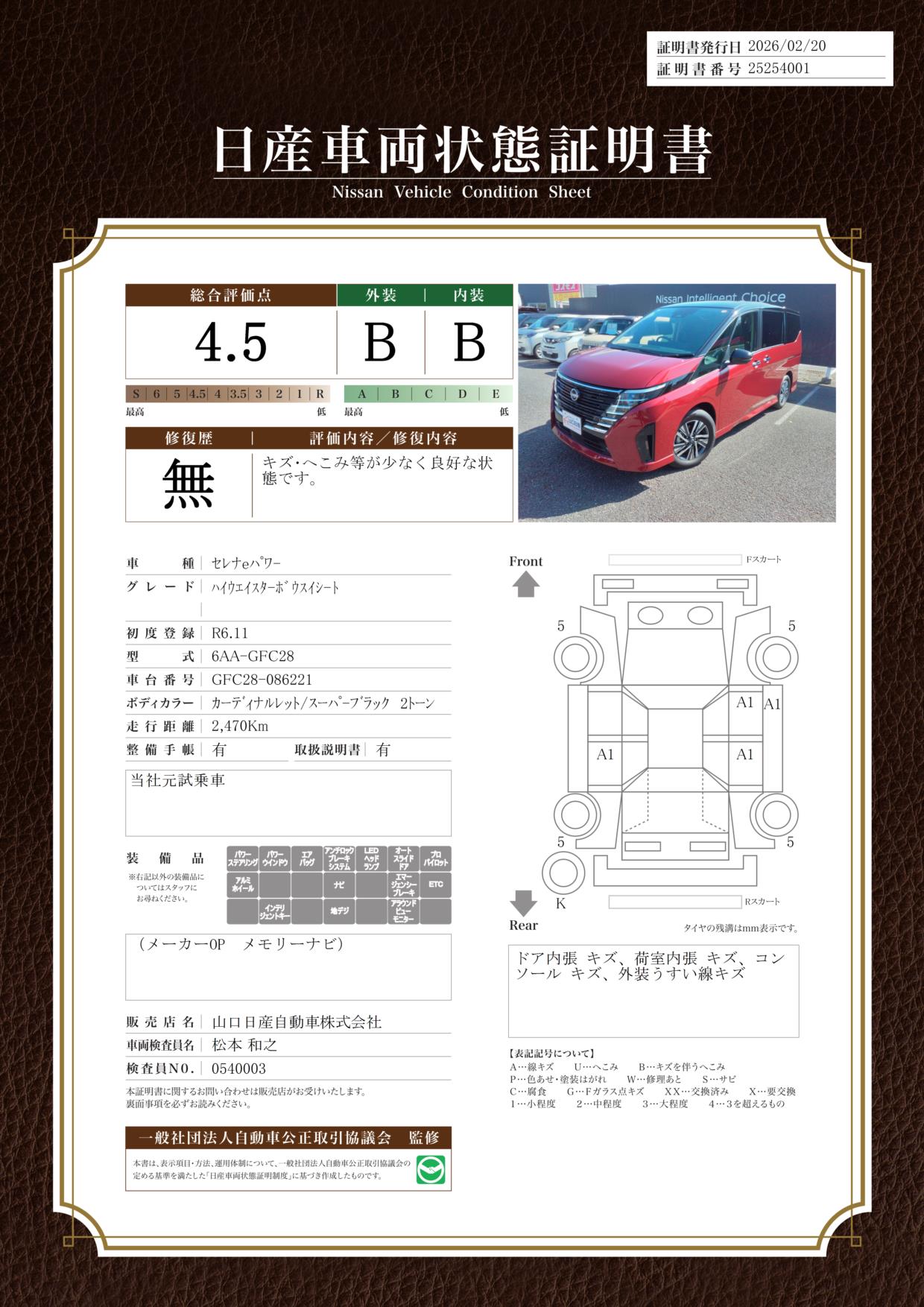 「車両状態証明書」は、査定協会監修のプロの検査員が公正かつ確かな基準で検査した”安心の証”です。