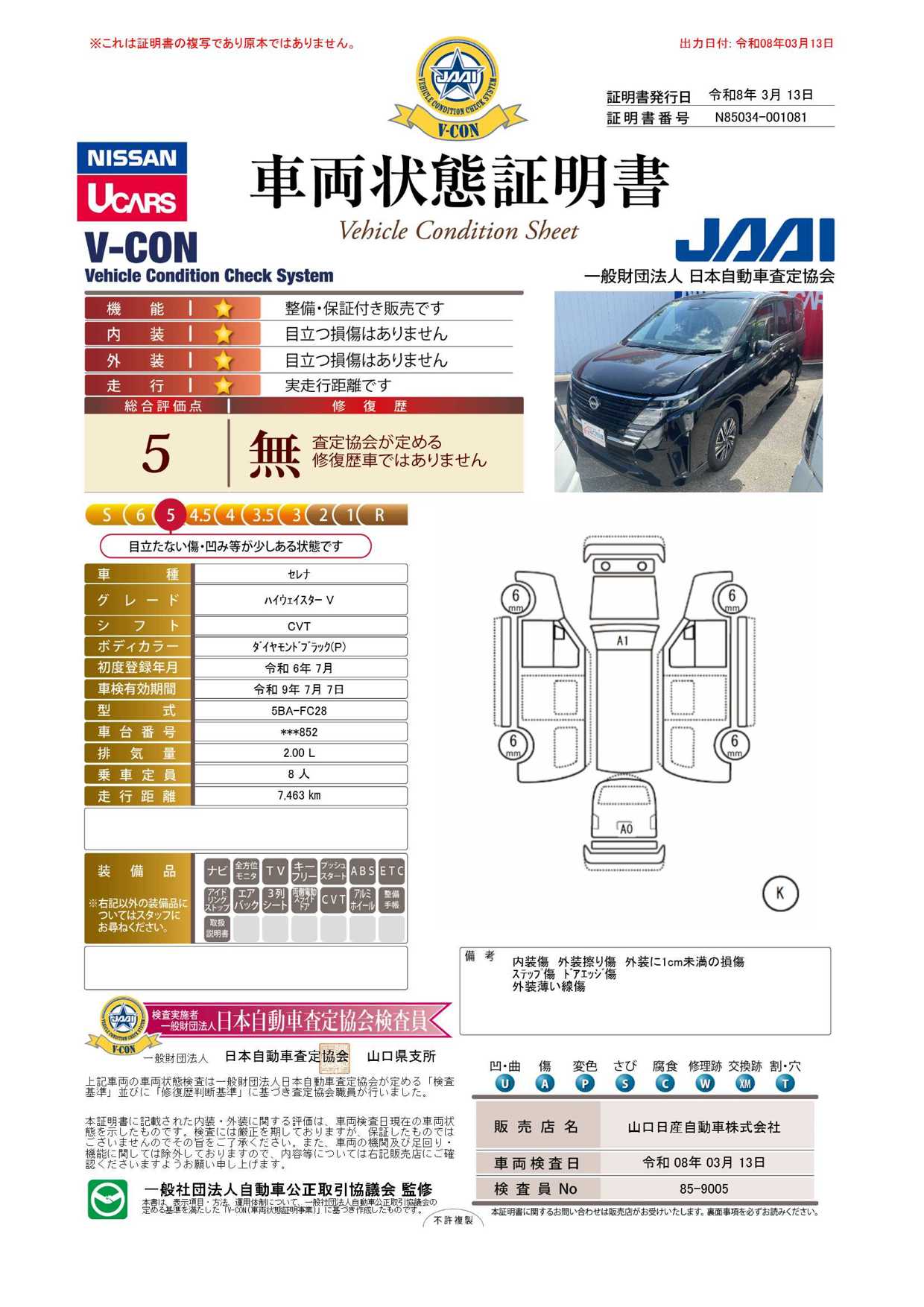 「車両状態証明書」は、査定協会監修のプロの検査員が公正かつ確かな基準で検査した”安心の証”です。