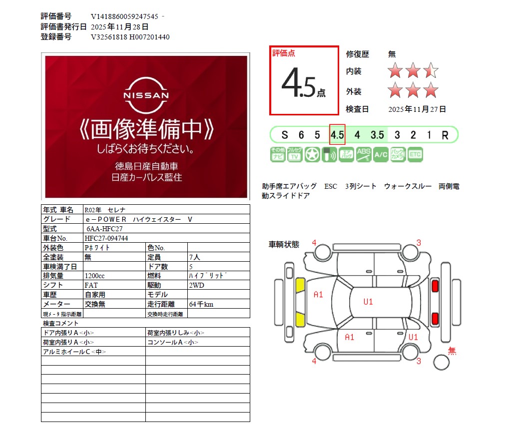 セレナ 1200cc 1.2 e-POWER ハイウェイスター V 禁煙車 全周囲カメラ ETC ドラレコ