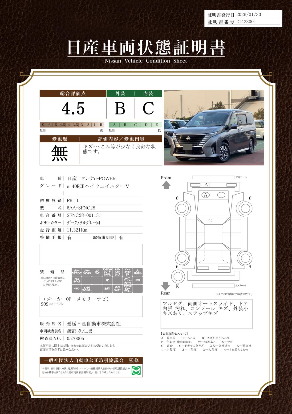 セレナ 1400cc 1.4 e-4ORCE ハイウェイスターV 4WD 当社試乗車UP A-WINエアロ装着