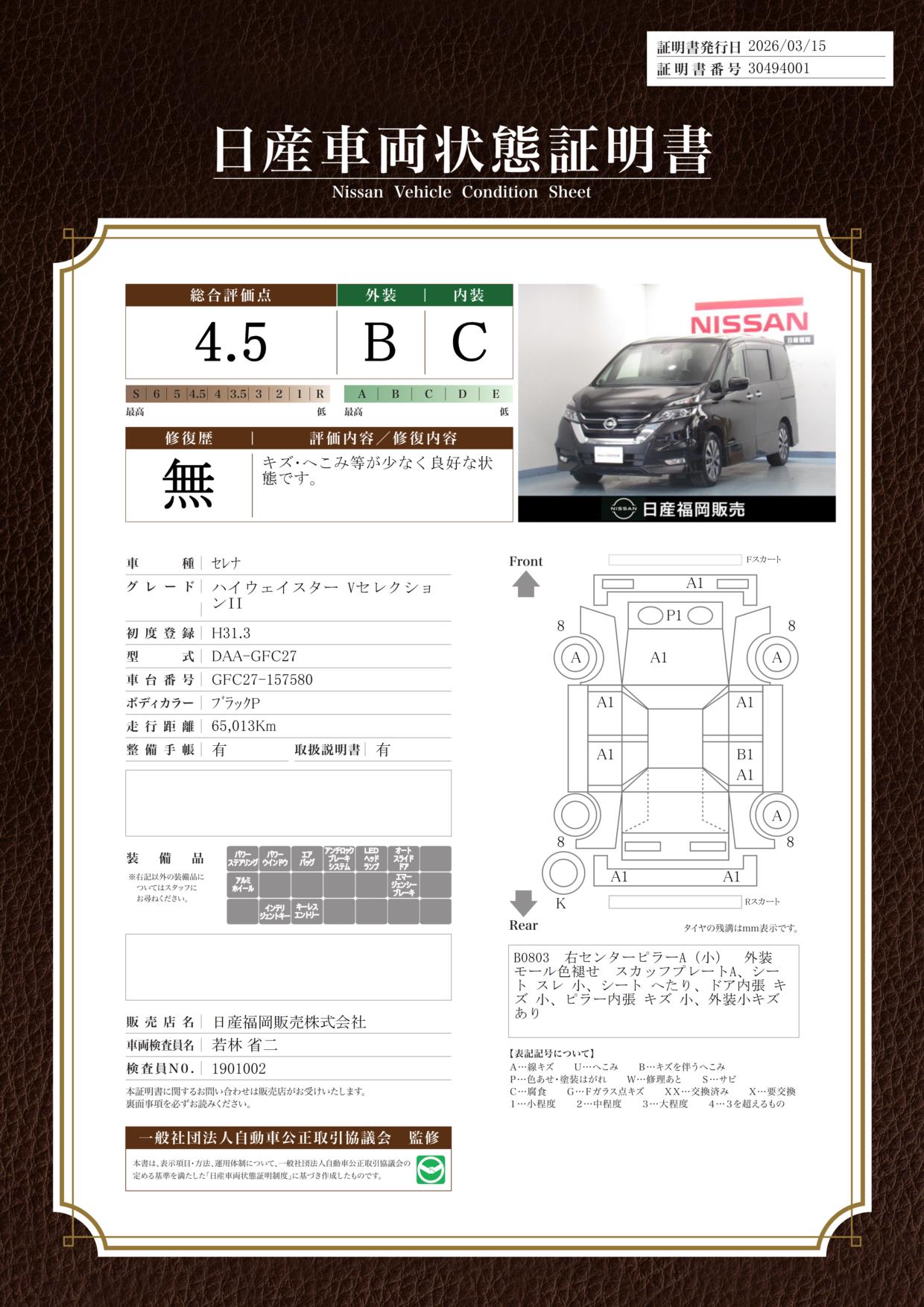 こちらのクルマは 「日産認定中古車」。 だから、4つの安心をお約束。
