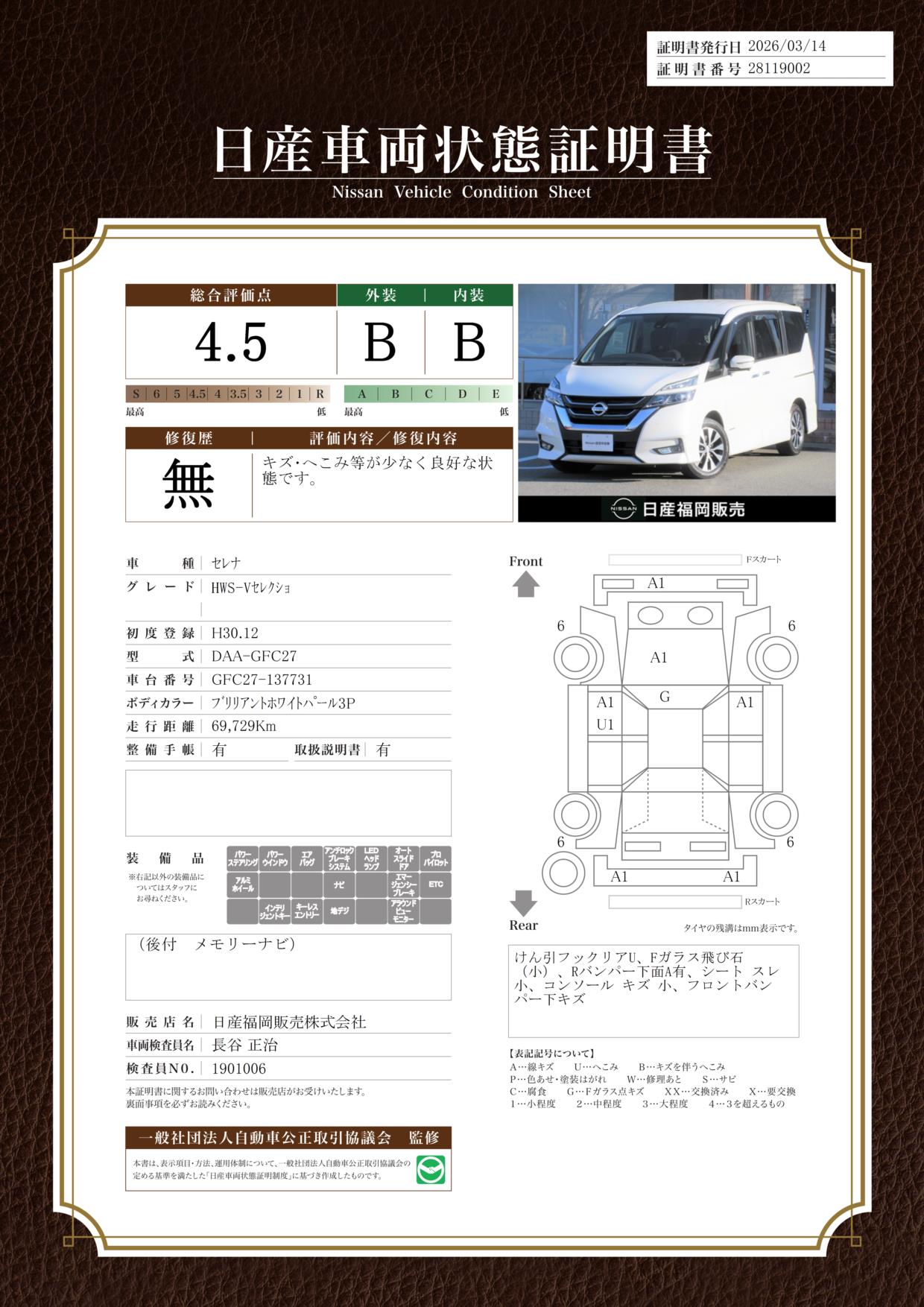 日産車両状態証明