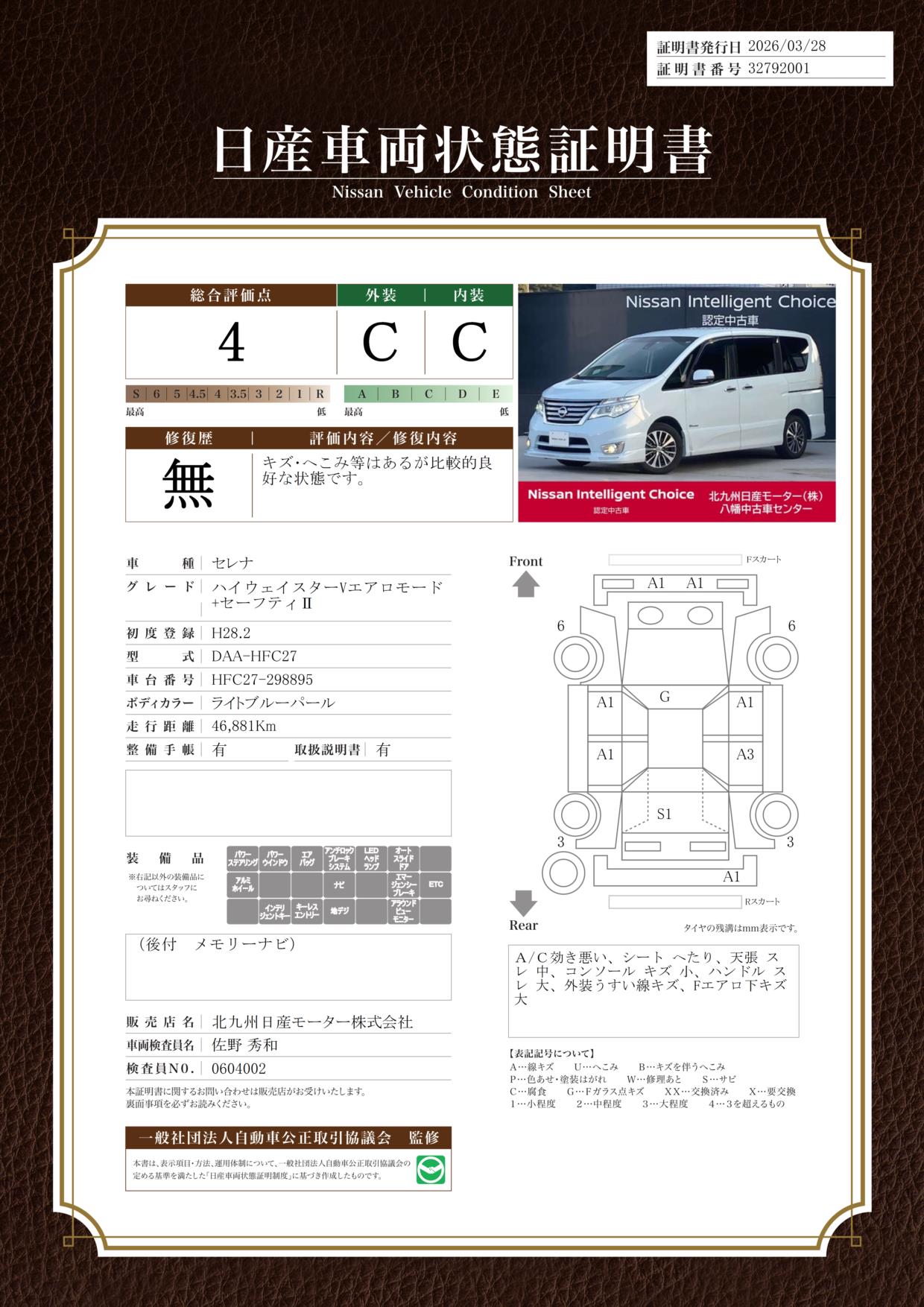 日産 セレナ HWS Vエアロ+Safety!車検整備渡・日産ワイド保証・純正ナビ・後席モニタ・両側電動ドア・衝突軽減・横滑防止・踏間違防止・車線逸脱警報・ETC