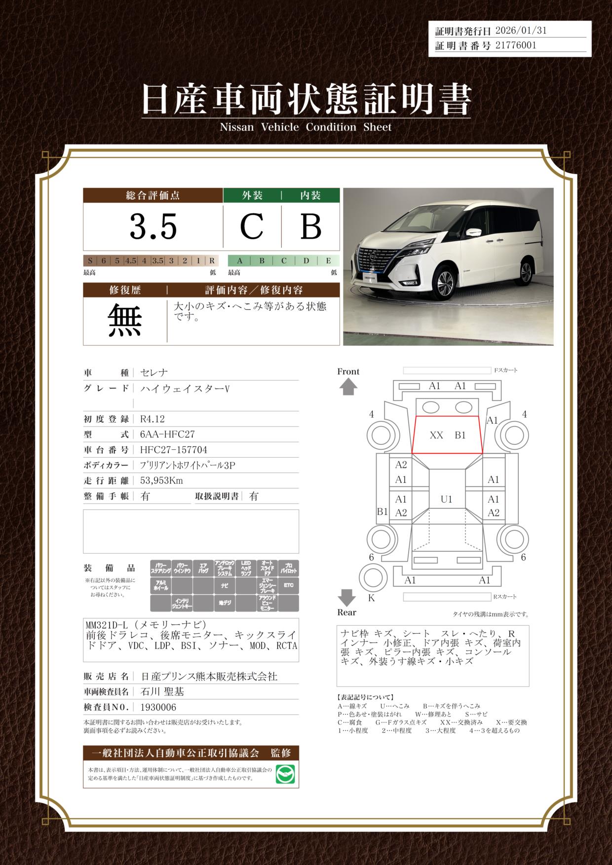 現状括弧書き内の年月まで車検有効期限が残っていますが、ご成約時に新しく車検を取り直します。なお取り直しの費用は車両価格に含まれています。
