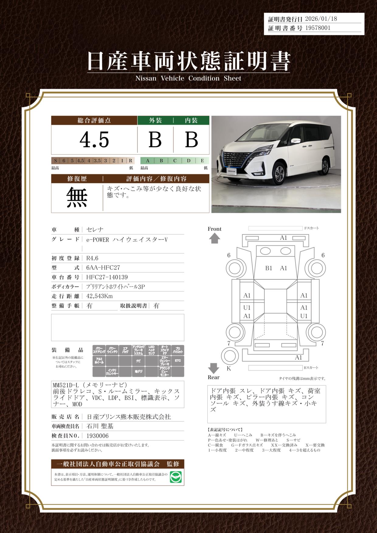 現状括弧書き内の年月まで車検有効期限が残っていますが、ご成約時に新しく車検を取り直します。なお取り直しの費用は車両価格に含まれています。