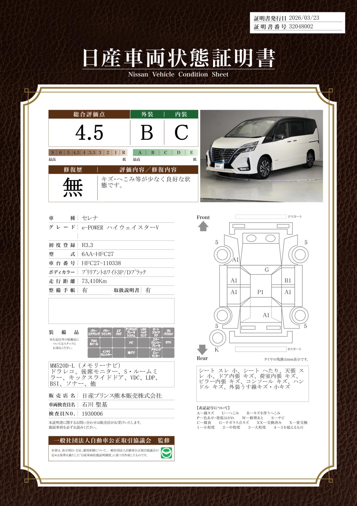 日産車両状態証明