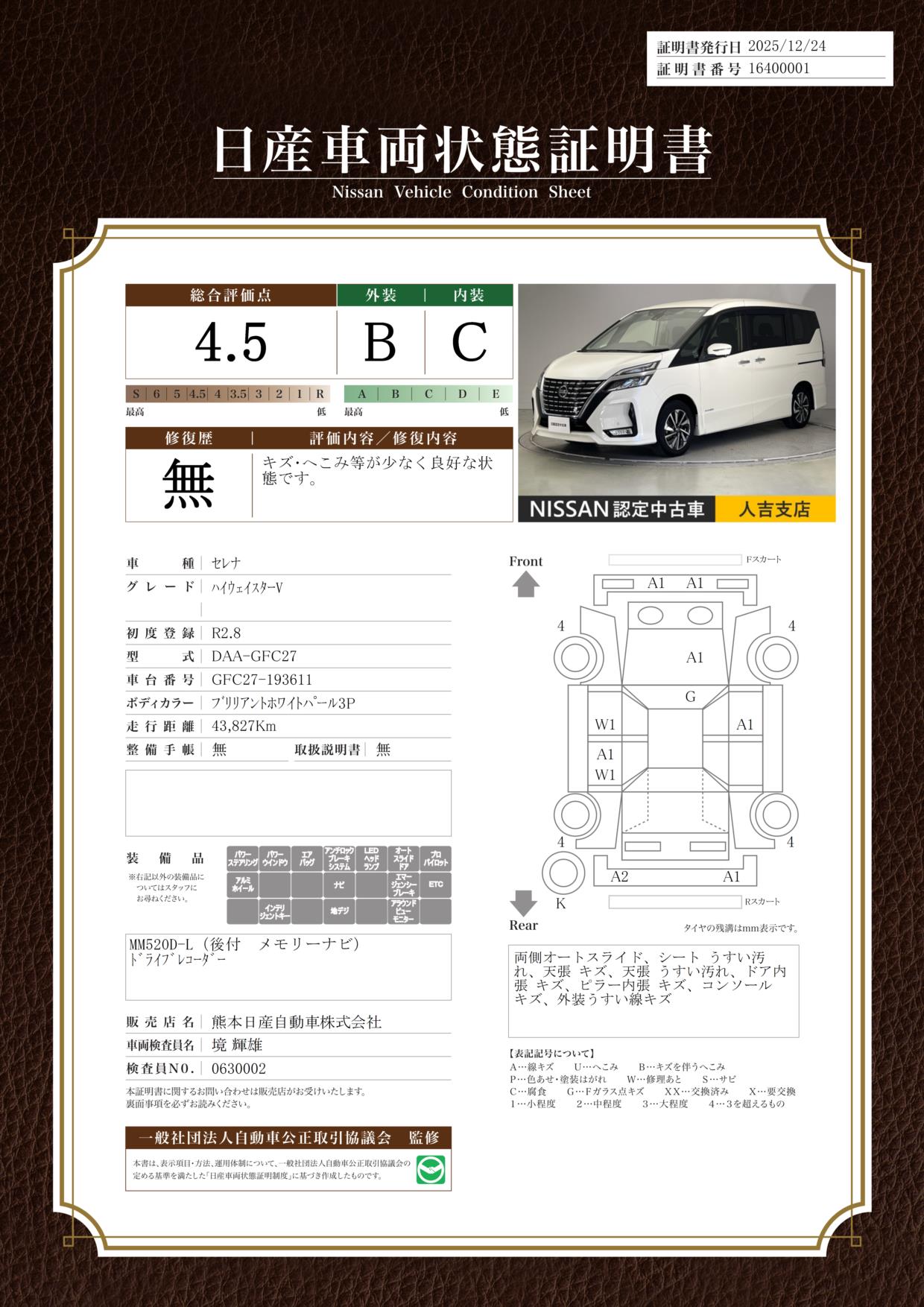 2020年式 セレナ 2.0ハイウェイスターV 入庫しました!前後ドライブレコーダー★ETC★アラウンドビューモニター★プロパイロット★