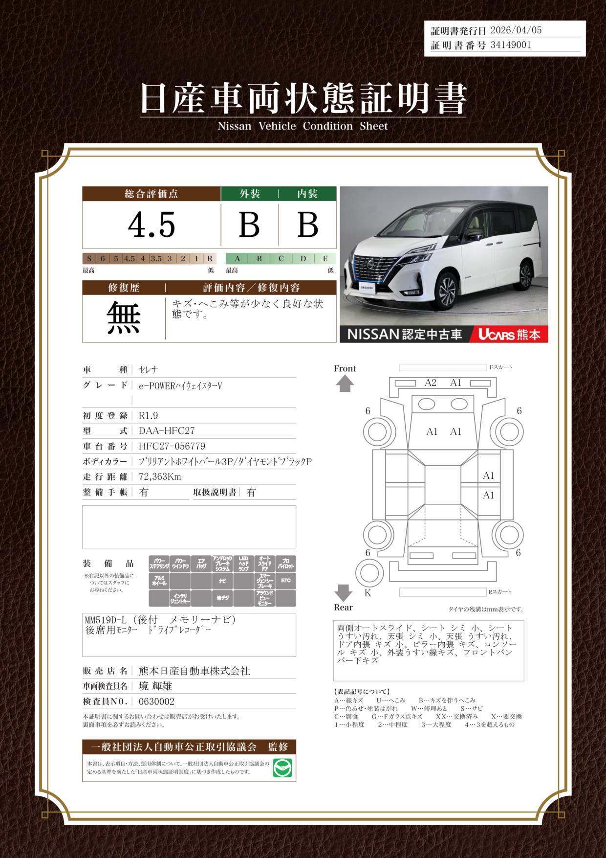 日産車両状態証明