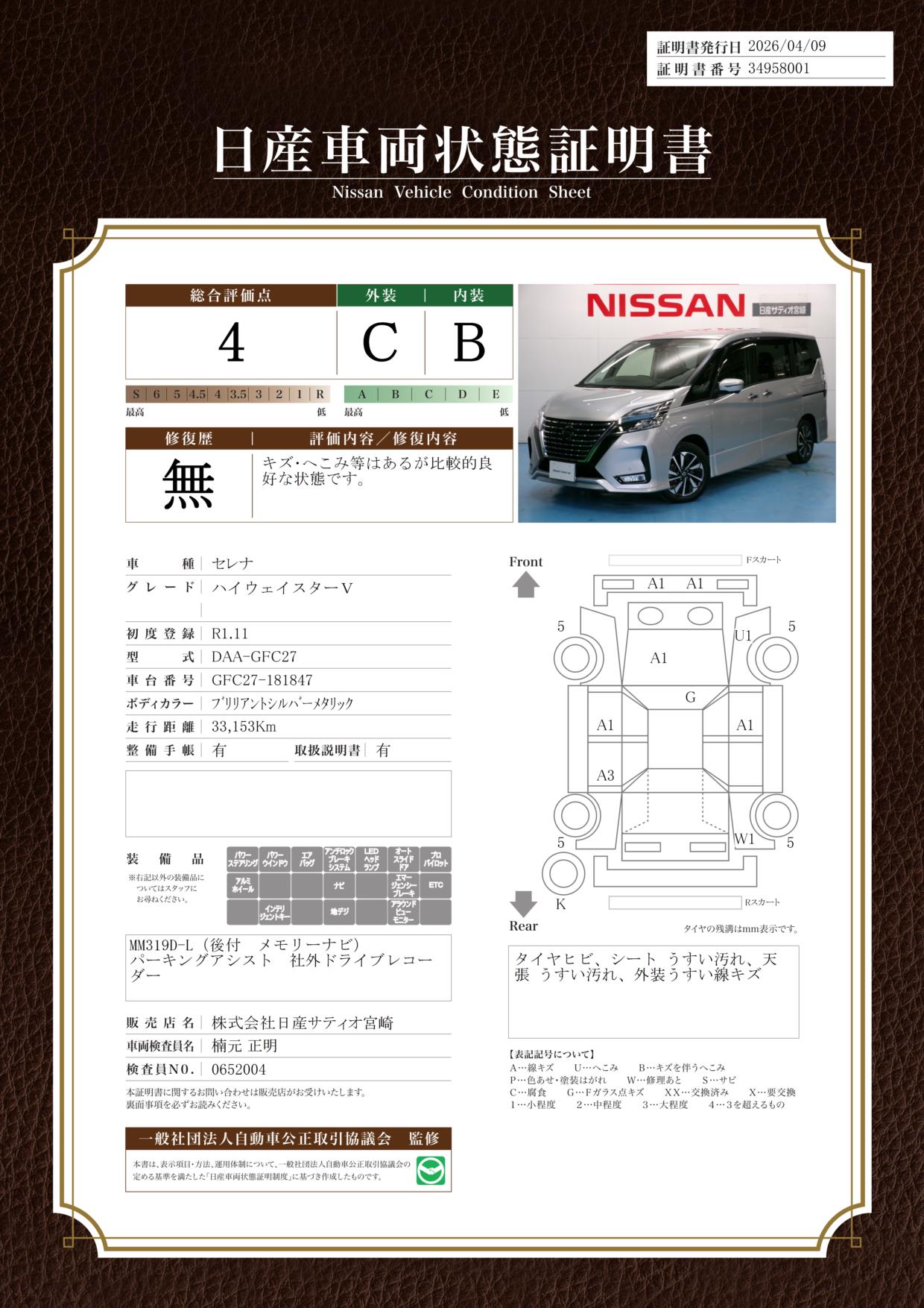 この度は当店を検索頂き誠にありがとうございます。今話題のe-Powerや100%電気で走る軽自動車サクラ、安全装置搭載車を多数展示!価格は総額表示で分りやすく、更に日産のワイド保証付で安心!4月は『春のお買得中古車フェア!』を開催。お買得車を多数ご準備して、ご来場を心よりお待ちしております。フェア期間R8年3月30日(月)から4月26日(日)迄。毎週、火・水曜日が定休日。