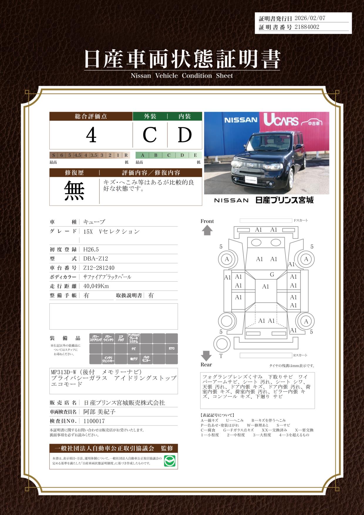 安心の全車日産ワイド保証付!プラス2年の延長保証もあります(走行無制限)♪ プレミアム認定中古車&日産認定中古車を多数取り揃えております。 自動車保険見積り(無料診断)、JAF、日産会員、クレジット販売 頭金なし~最長72回までOK!金利5.9%(固定)実施中! ◇全展示車クリーニング、ビニールシートカバー、紙マット、ハンドルカバーを徹底しております◇ 女性スタッフもおりますので、お一人様でのご来店でもお気軽にお越しください。 ※地下鉄東西線 「卸町駅」下車、徒歩5分