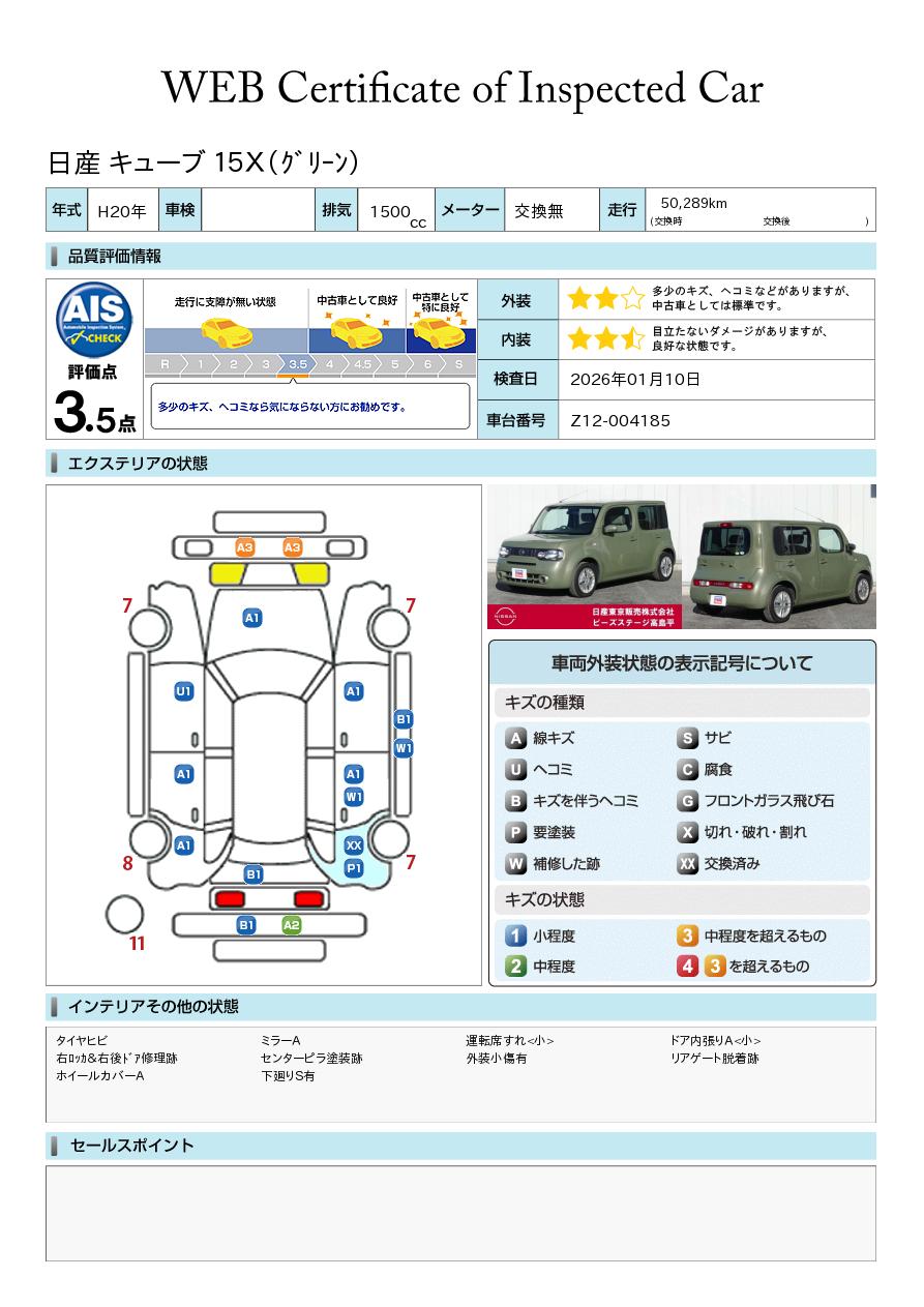 キューブ 1500cc 1.5 15X 純正メモリーナビ バックカメラ