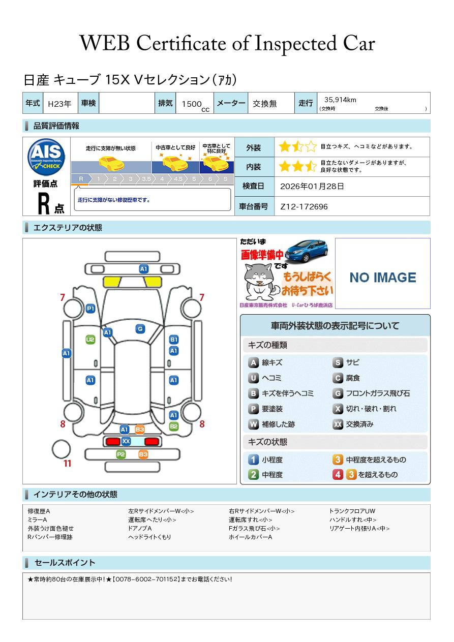 キューブ 1500cc 1.5 15X Vセレクション 純正メモリーナビ ETC バックカメラ