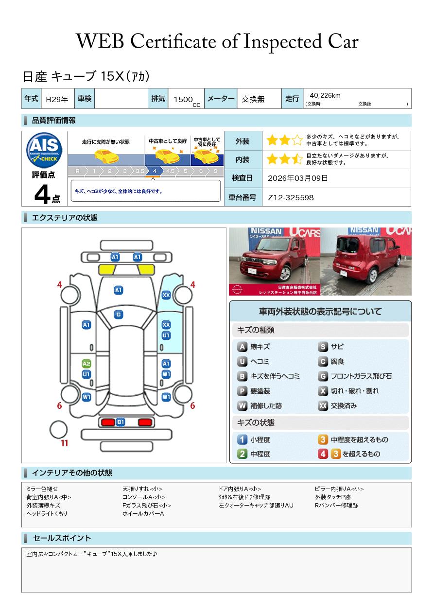 室内広々コンパクトカー”キューブ”15X入庫しました♪純正メモリーナビ、ナビ連動ドラレコ、ETC、バックカメラ、インテリキー、アイドリングストップ装備☆
