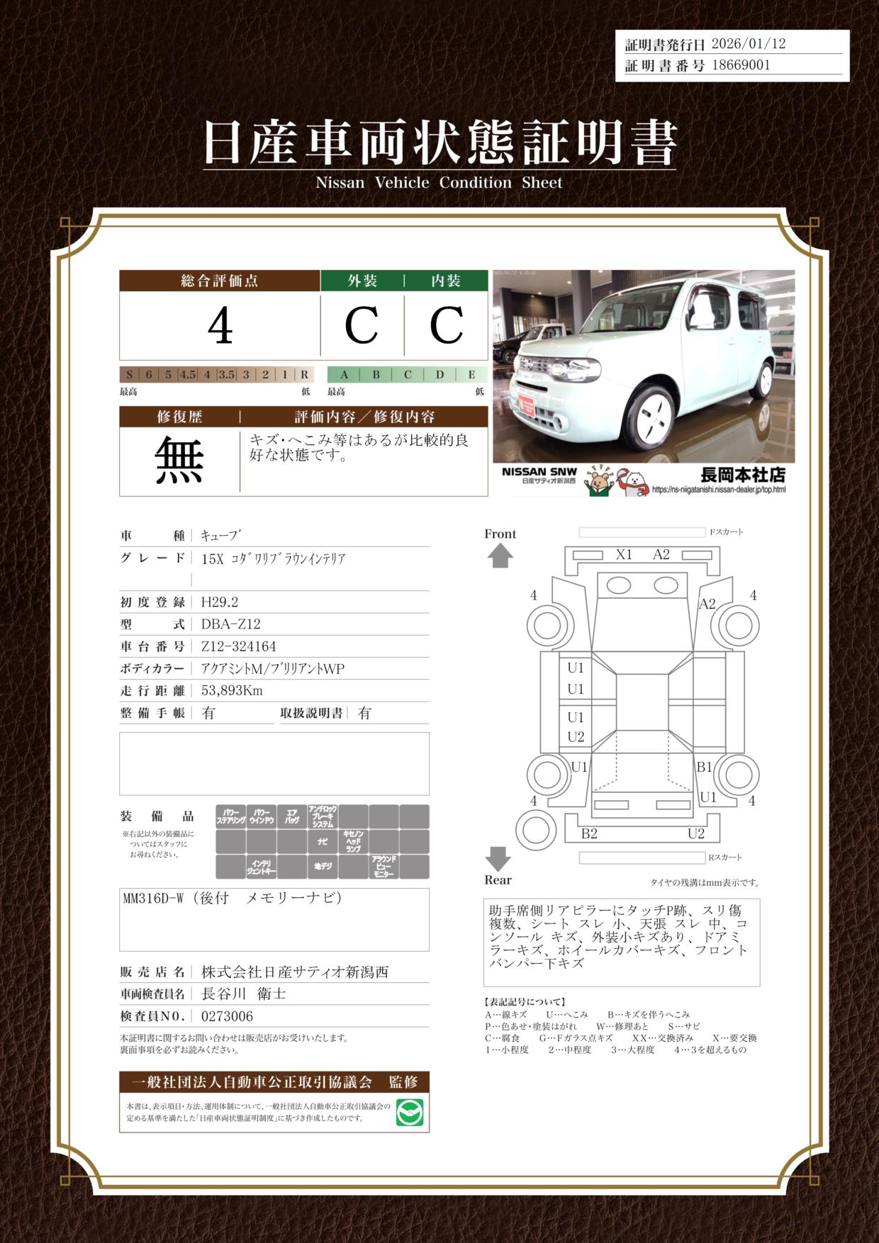現状括弧書き内の年月まで車検有効期限が残っていますが、ご成約時に新しく車検を取り直します。なお取り直しの費用は車両価格に含まれています。