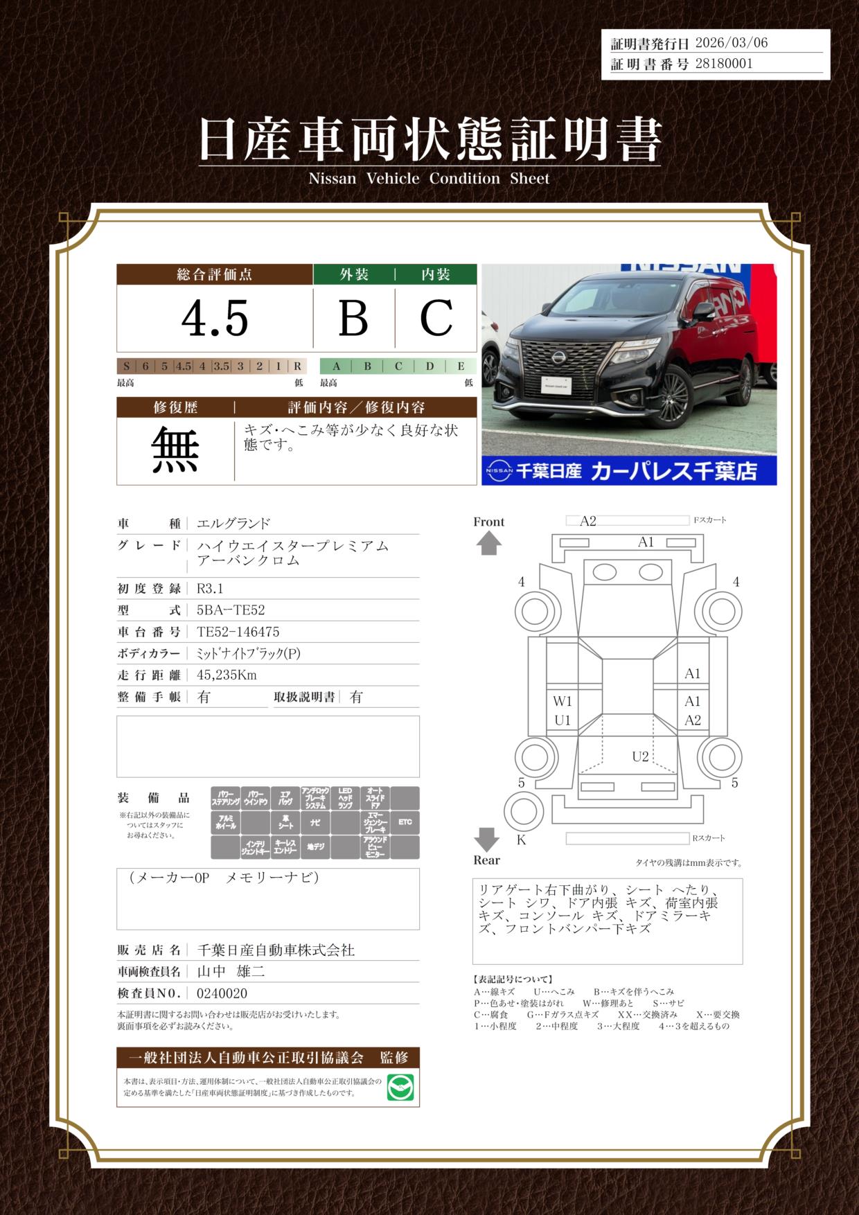 日産車両状態証明