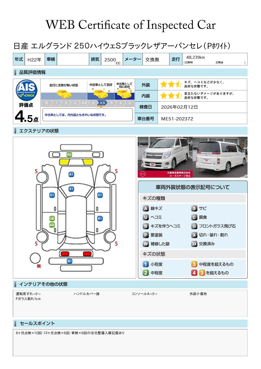 現状括弧書き内の年月まで車検有効期限が残っていますが、ご成約時に新しく車検を取り直します。なお取り直しの費用は車両価格に含まれています。