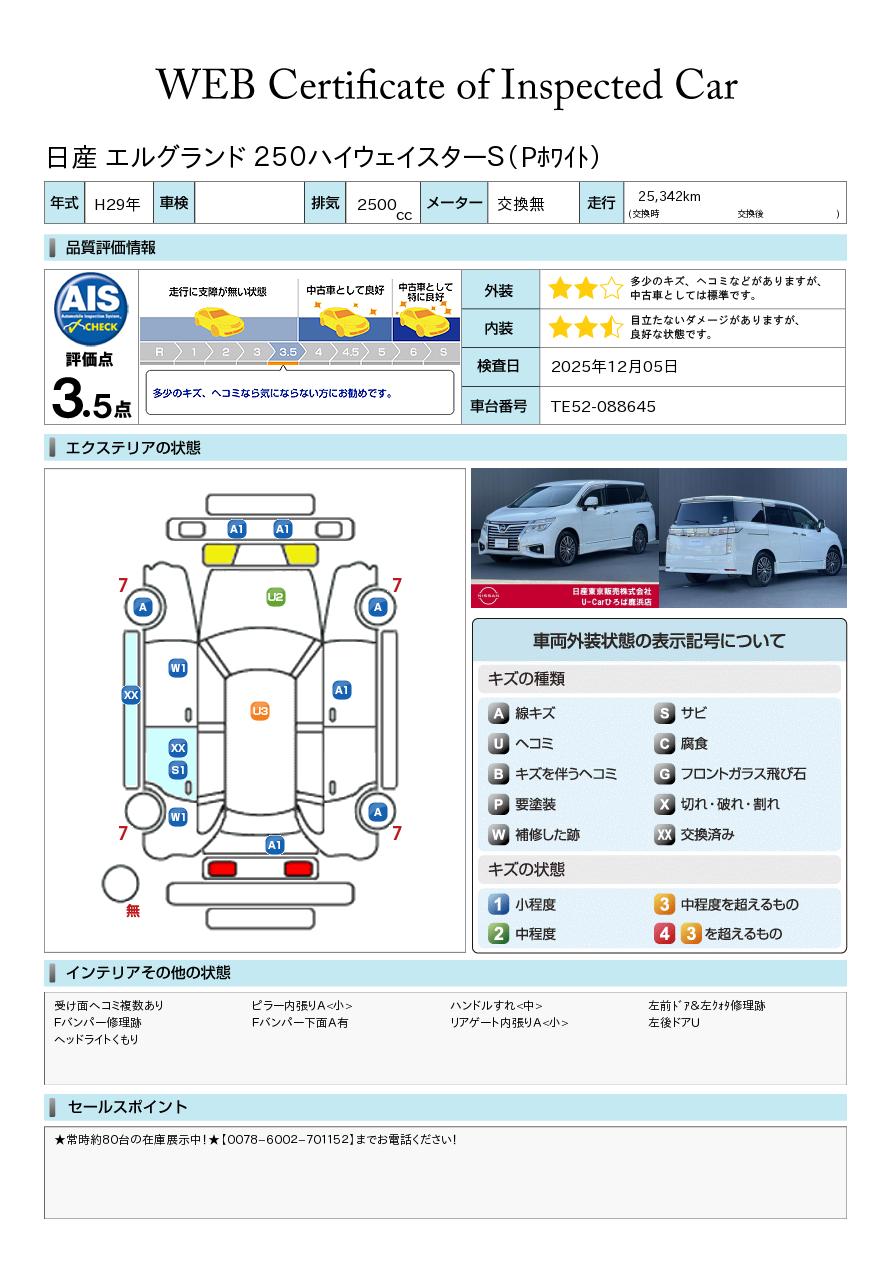 エルグランド 2500cc 2.5 250ハイウェイスターS アーバンクロム