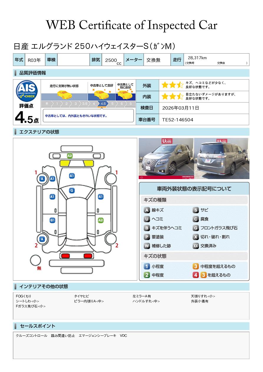 現状括弧書き内の年月まで車検有効期限が残っていますが、ご成約時に新しく車検を取り直します。なお取り直しの費用は車両価格に含まれています。