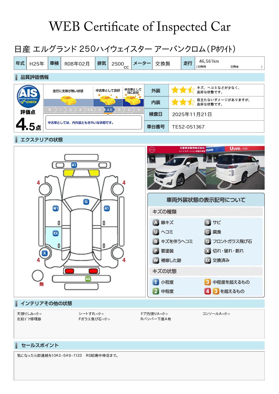 エルグランド 2500cc 2.5 250ハイウェイスターS