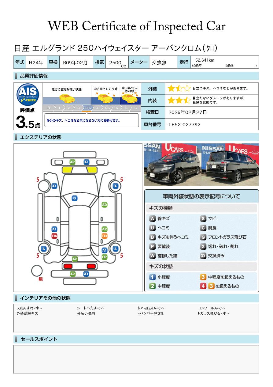 エルグランド 3500cc 3.5 350ハイウェイスター アーバンクロム 後席モニター エマブレ 両側オートSドア