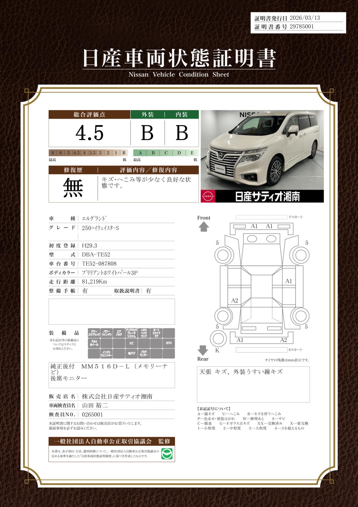 こちらのクルマは 「日産認定中古車」。 だから、4つの安心をお約束。