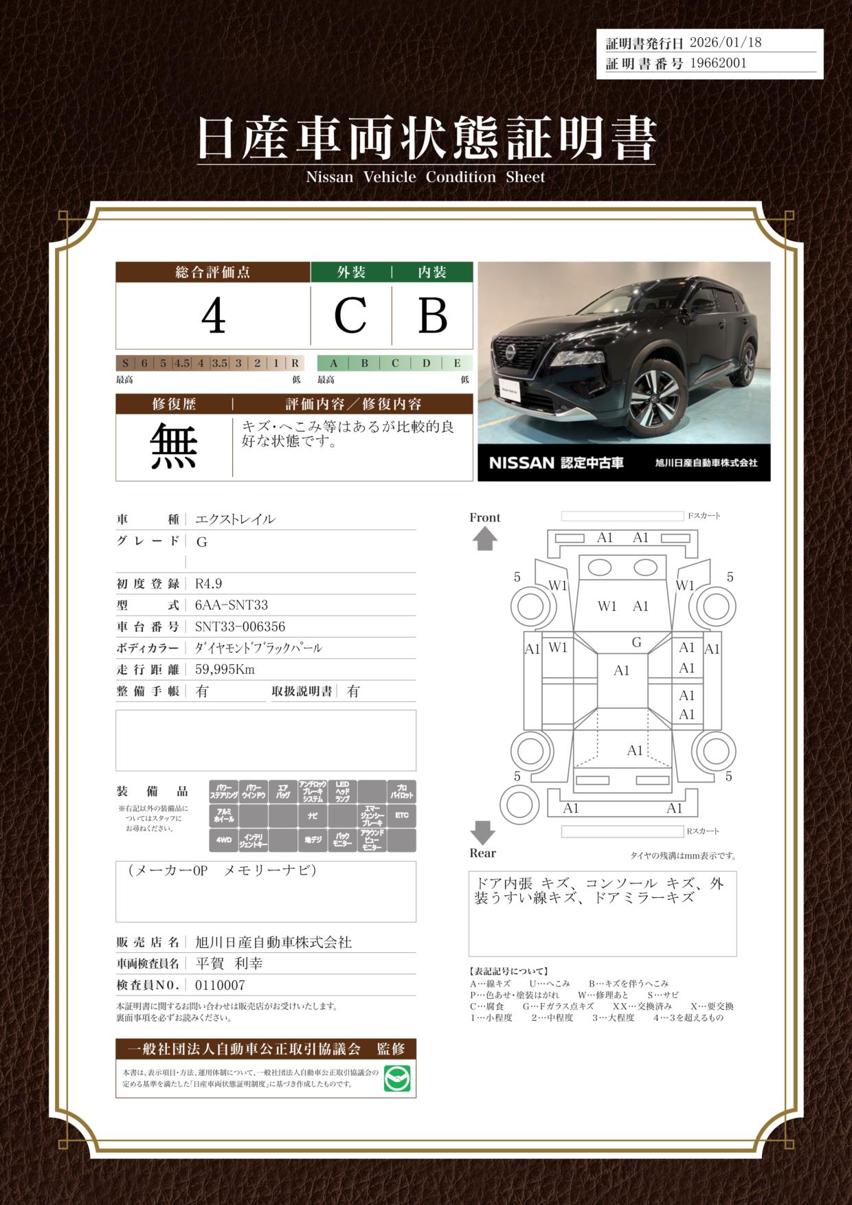 エクストレイル 1500cc 1.5 X e-4ORCE 90周年記念車 4WD NCナビ  アラウンドビューモニター リヤ