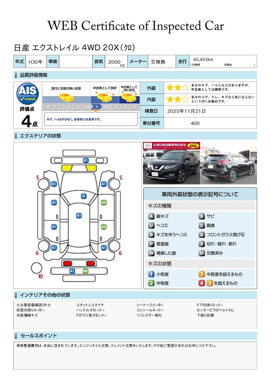 日産車はモチロンのこと 他メーカーでも軽自動車からミニバンまで幅広く展示中! 「くるまるく」店の中でもスケールの大きい店舗ですので、在庫も豊富に常時40台~60台展示中! AIS評価書付車両(第三者評価書)も多数ございますので、ご安心ください♪ 安心の日産「ワイド保証」や「自社ピット」完備! スタッフ一同お待ち申し上げております^^ 全車走行メーター管理システム導入☆(日本オートオークション協議会)