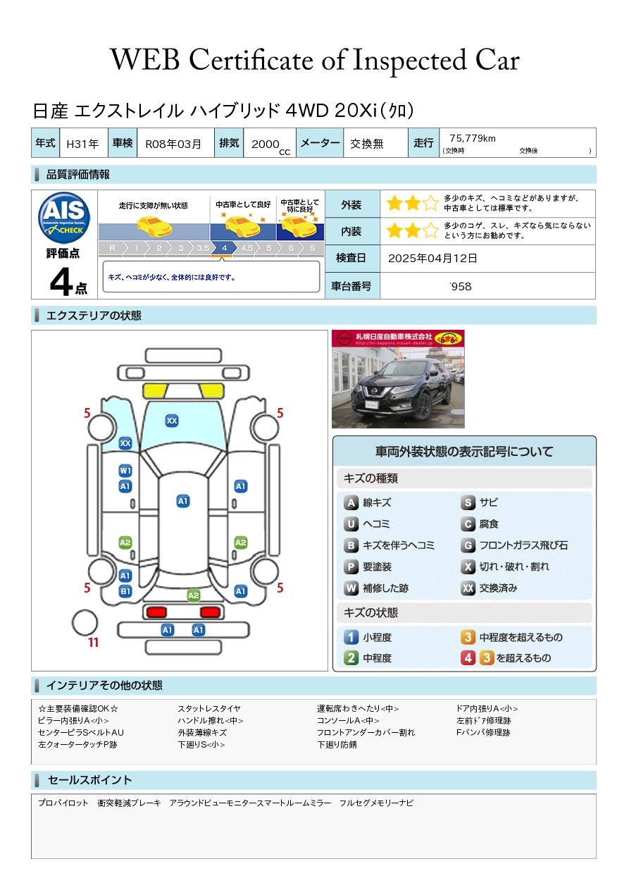 日産車は勿論のこと他メーカーでも軽自動車からミニバンまで幅広く展示中! 新車中古車併売店ですので、新車販売もOK! AIS評価書付車両(第三者評価書)も多数ございますので、ご安心ください♪ 安心の日産「ワイド保証」や「自社指定工場」完備! 岩見沢インターすぐ側です♪(札幌ジャンクションより約30分) スタッフ一同お待ち申し上げております^^ 全車走行メーター管理システム導入☆(日本オートオークション協議会)