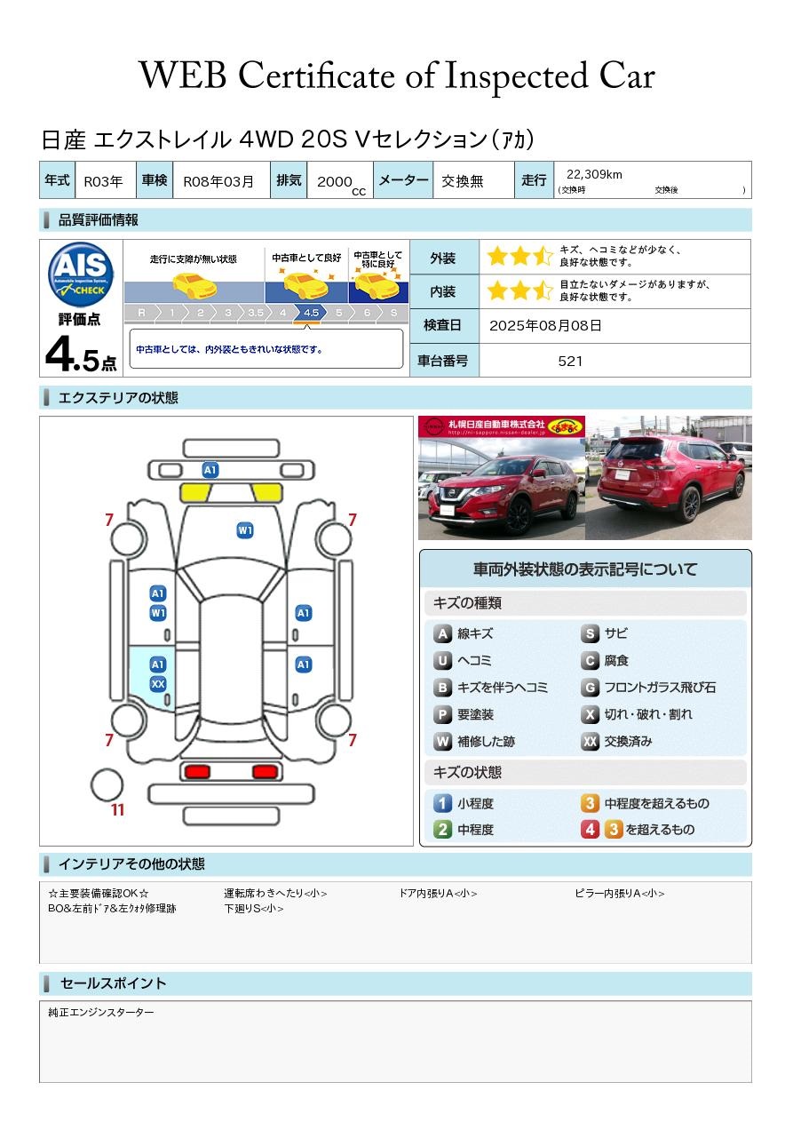 現状括弧書き内の年月まで車検有効期限が残っていますが、ご成約時に新しく車検を取り直します。なお取り直しの費用は車両価格に含まれています。