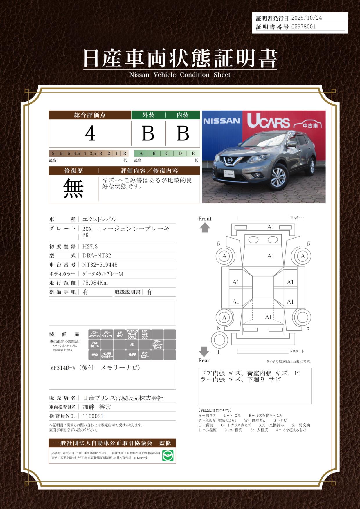 日産自動車認定の中古車販売店です。