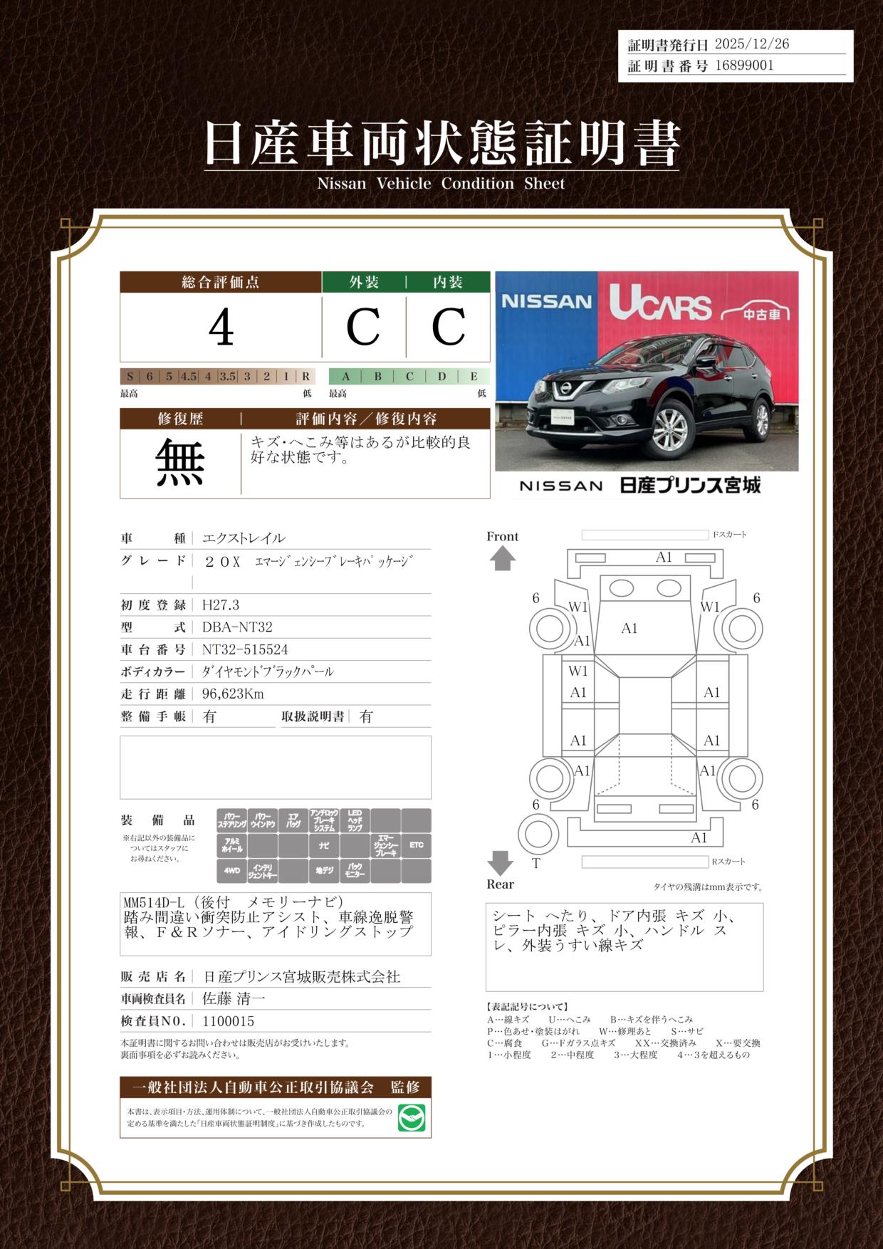 1年保証付(期間中走行距離無制限)全国の日産サービス工場にて保証が受けられるのでお出かけ時でも安心です♪2年延長保証もあります!『ワイド保証プレミアム』お問い合わせください