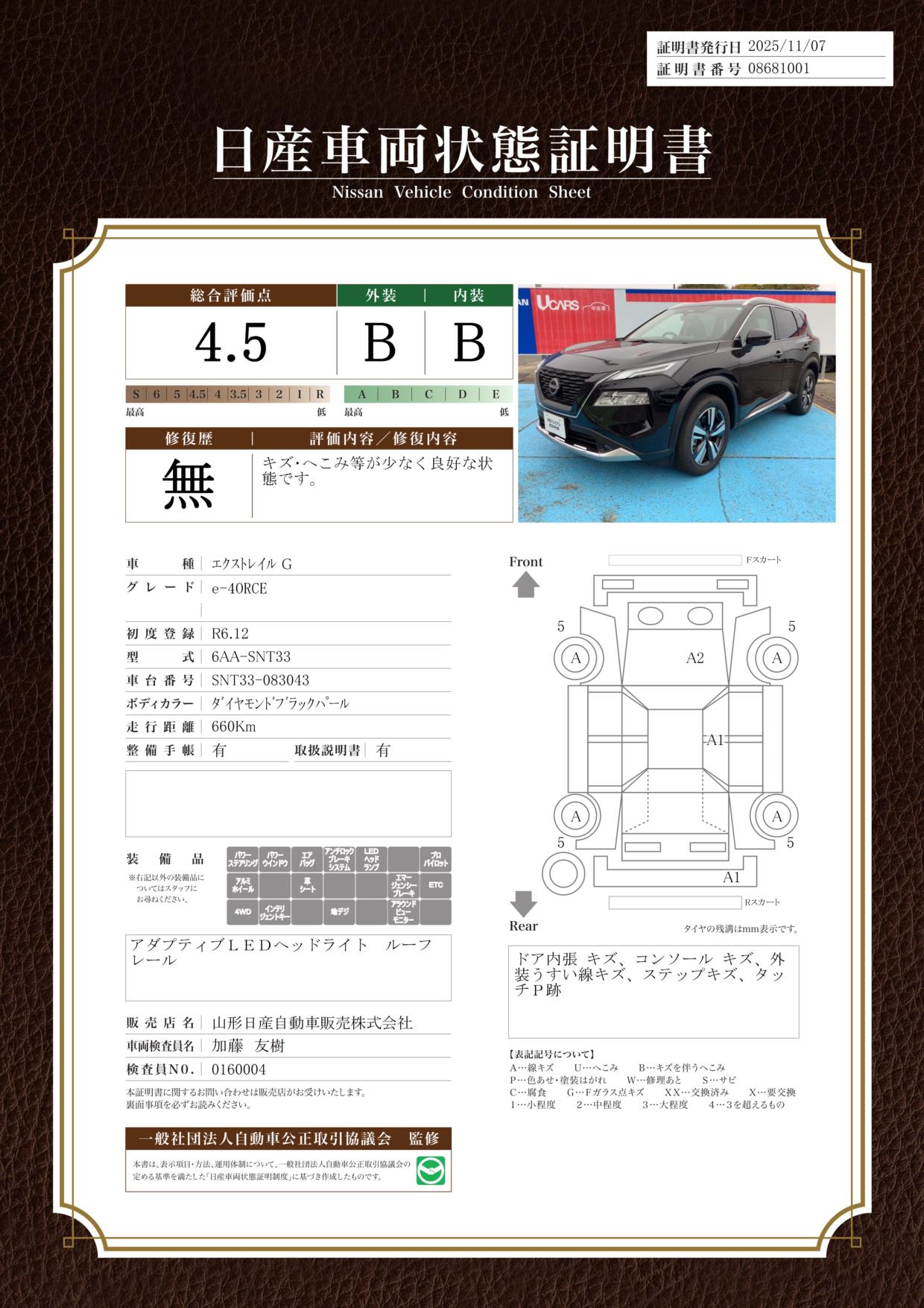 評価機関 : 日産車両状態証明