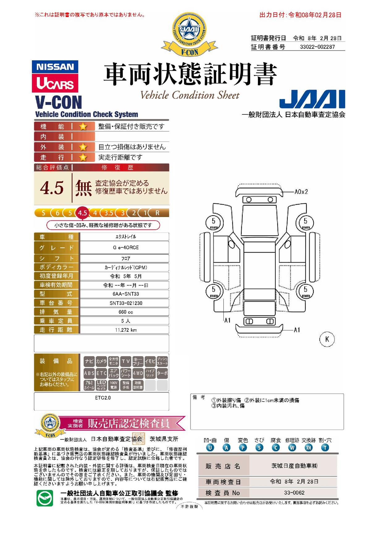 「車両状態証明書」は、査定協会監修のプロの検査員が公正かつ確かな基準で検査した”安心の証”です。
