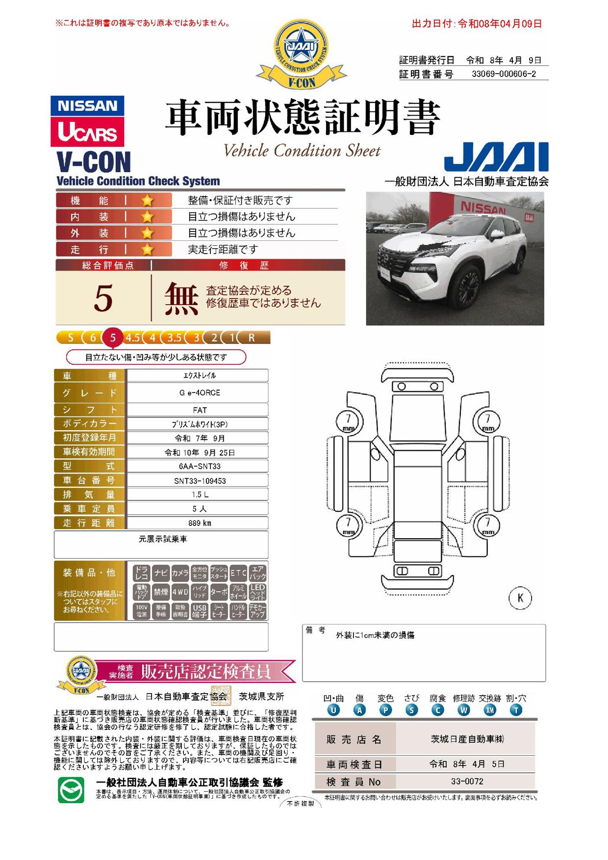 「車両状態証明書」は、査定協会監修のプロの検査員が公正かつ確かな基準で検査した”安心の証”です。
