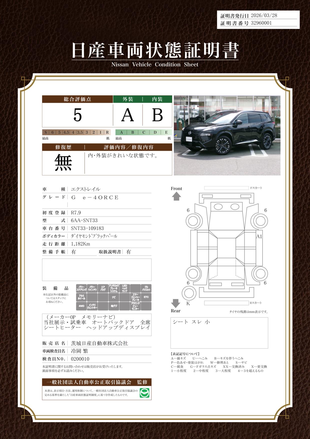 「車両状態証明書」は、査定協会監修のプロの検査員が公正かつ確かな基準で検査した”安心の証”です。