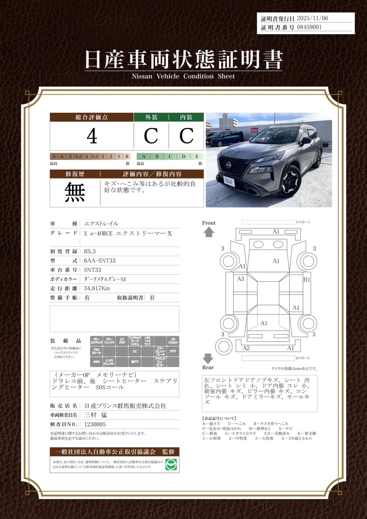 タバコ臭あり・NissanConnectナビ・アラウンドビューM・プロパイロット・ETC2.0・ドライブレコーダー(前・後)・全席ヒーターシート・ステアリングヒーター