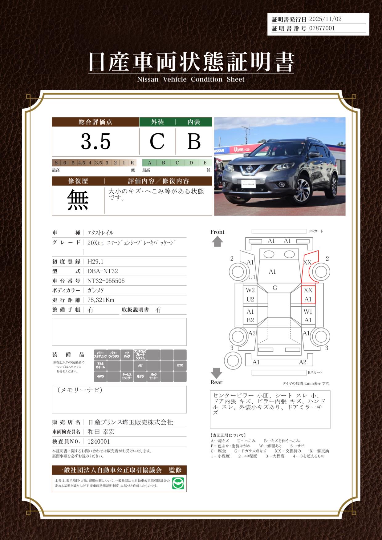 現状括弧書き内の年月まで車検有効期限が残っていますが、ご成約時に新しく車検を取り直します。なお取り直しの費用は車両価格に含まれています。