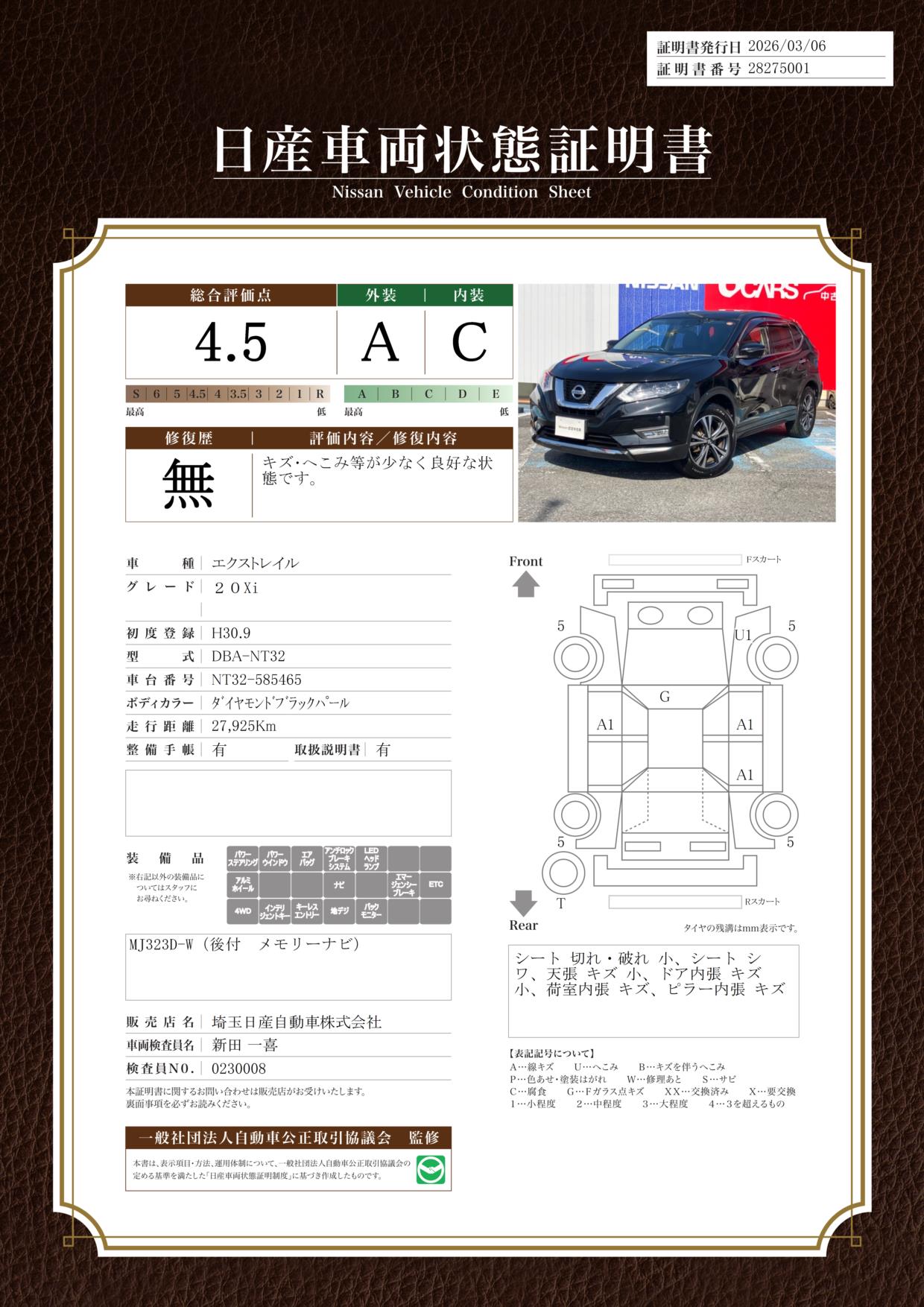 エクストレイル 2000cc 2.0 20X 2列車 4WD 禁煙車 プロパイロット エマブレ 純正ナビ