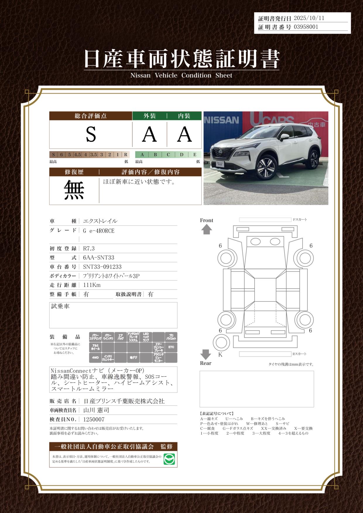 ★当社試乗車&認定中古車勢揃い!!台数限定!社用車特選車★目玉車!! ◆当社試乗車アップ・アリア・エクストレイル・オーラ・ノート・ルークス入荷中!! 当店は日産プリンス千葉・千葉日産自動車2社合同の大展示場店舗になります。 ◆ディーラーならではの安心の全車保証付き ◆全国2300の工場で充実の保証とアフターサービス ◆プレミアム認定中古車、認定中古車を多数展示 ◆全車安心の車両状態証明書完備 ◆全国陸送も対応可能 ★お問合せ・ご購入相談スタッフ一同お待ちしております。