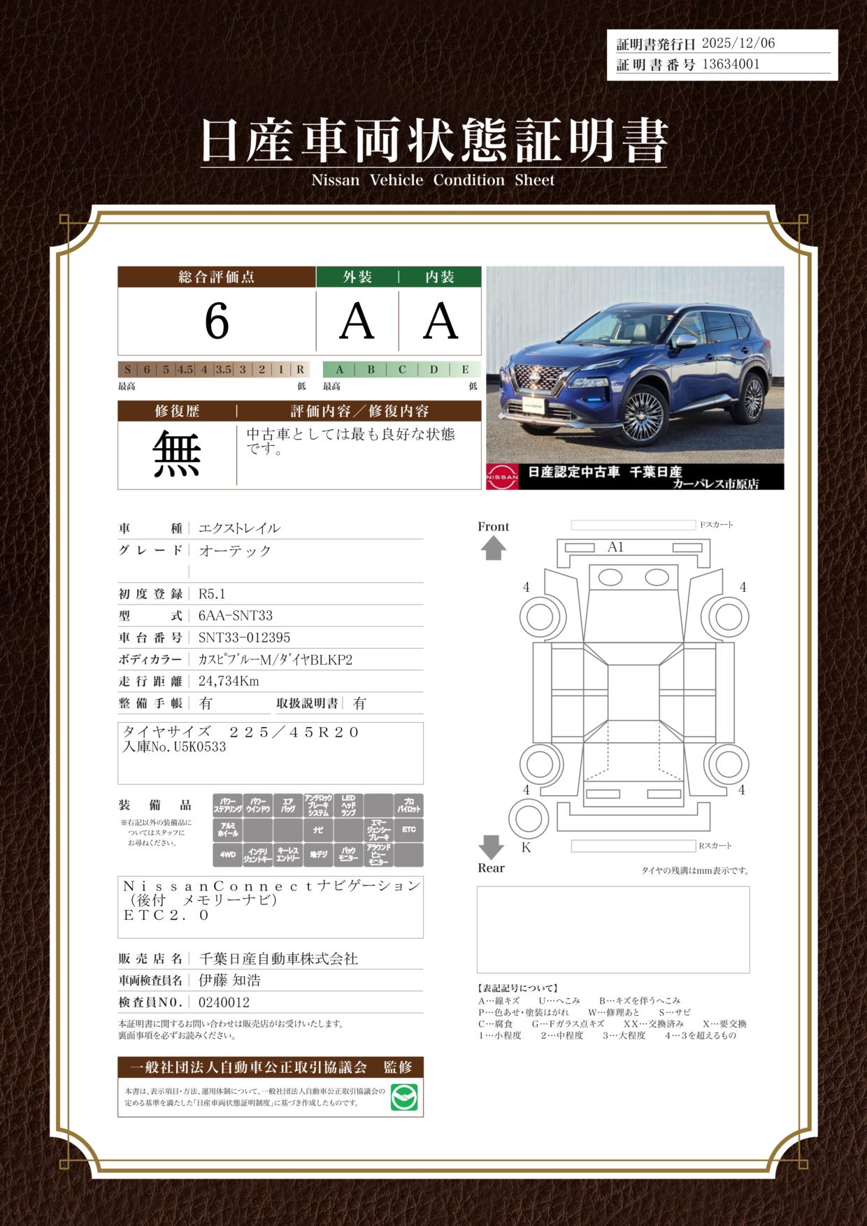 エクストレイル 1500cc 1.5 AUTECH アドバンスト パッケージ e-4ORCE 4WD メーカーナビサンルーフプロパイロットETC