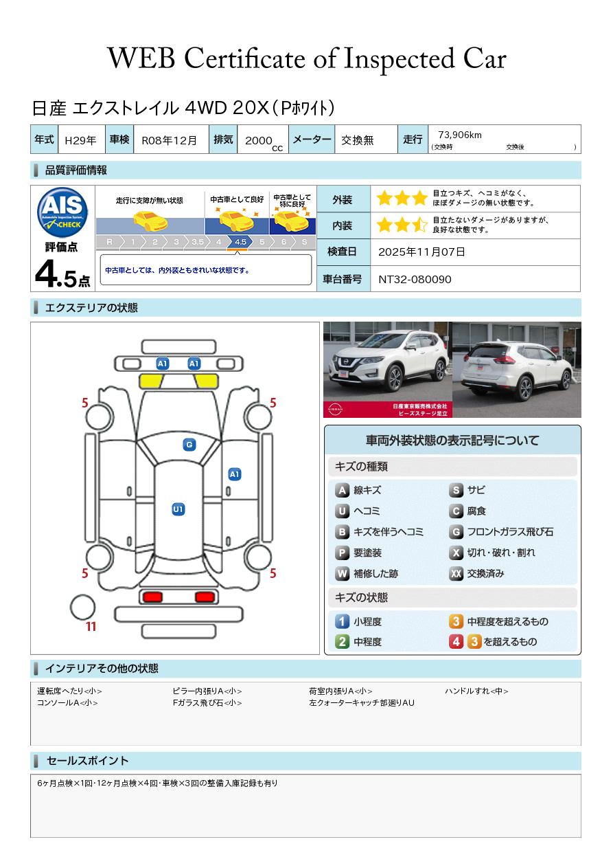 エクストレイル 2000cc 2.0 20X 2列車 4WD メモリーナビ プロパイ 防水シート