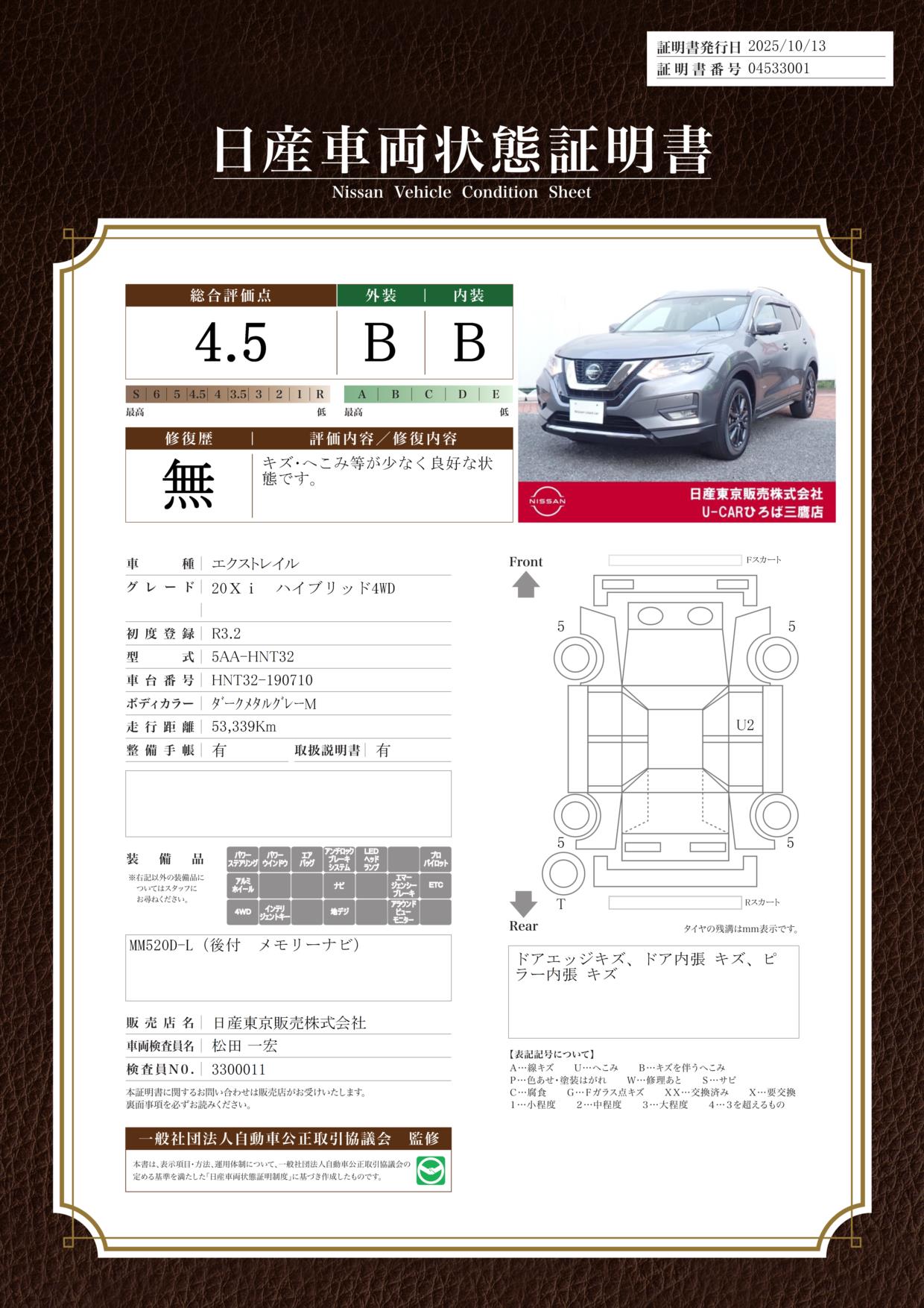 日産純正メモリナビ(MM520D-L)フルセグ CD DVD BD VDC LDW ETC2.0アラウンドビューモニター プロパイ エマブレ オートバックドア インテリミラー ルーフレール 4WD