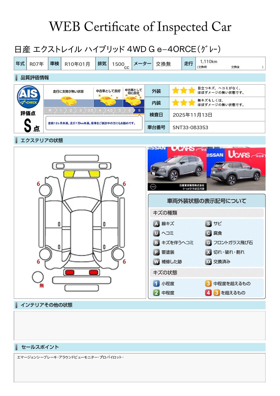 エクストレイル 1500cc 1.5 S e-4ORCE 4WD プロパイロット 4WD アラウンド