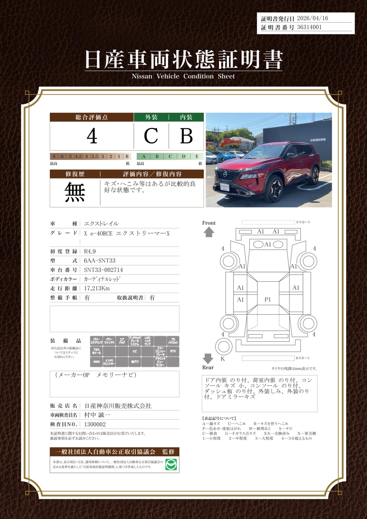 こちらのクルマは 「日産認定中古車」。 だから、4つの安心をお約束。