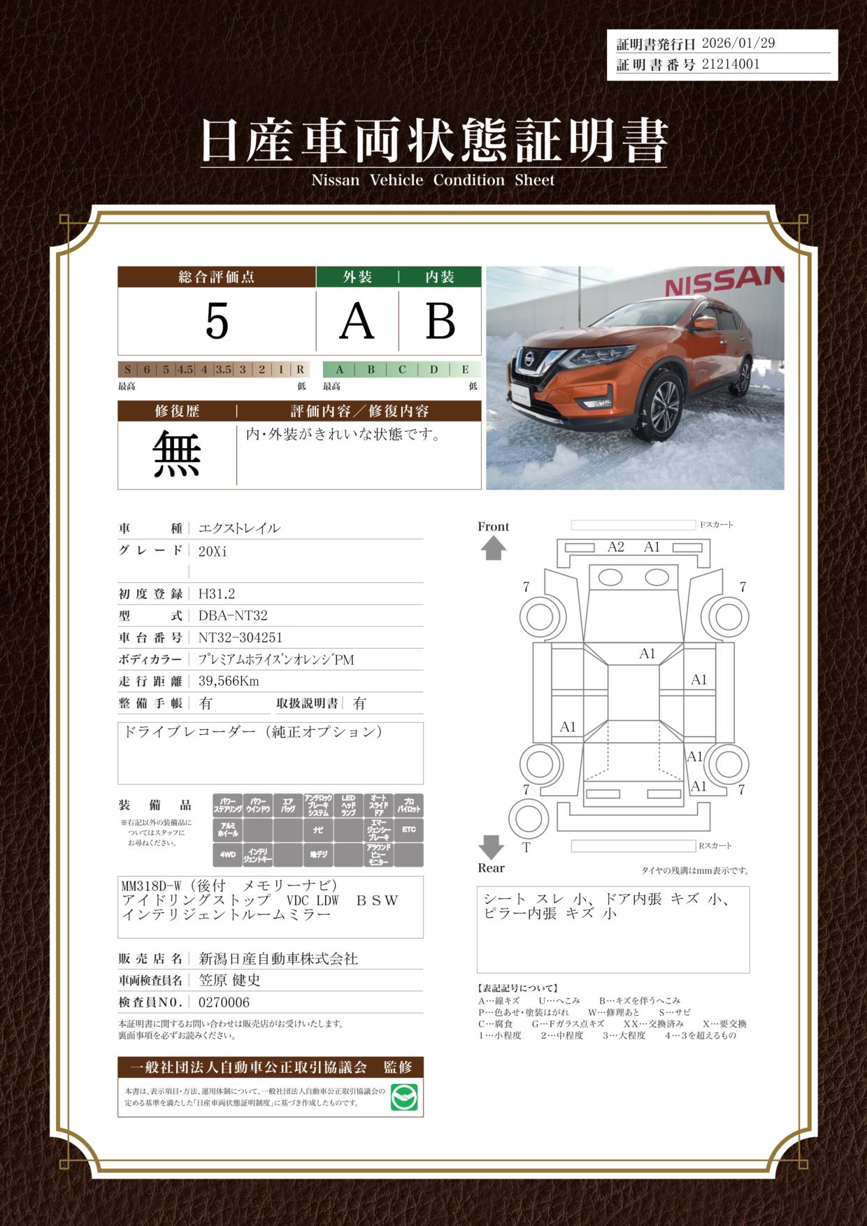 現状括弧書き内の年月まで車検有効期限が残っていますが、ご成約時に新しく車検を取り直します。なお取り直しの費用は車両価格に含まれています。